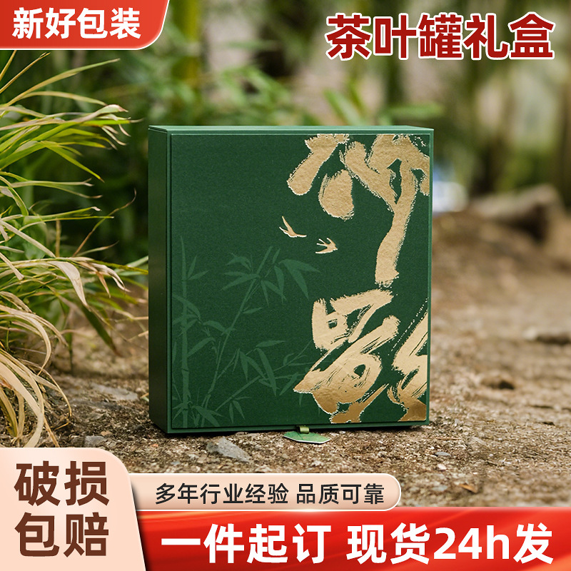 竹影緑茶鉄缶ギフトボックス空箱カスタム軽贅沢箔押し技術サポートロゴ茶名彫刻スポット卸売り