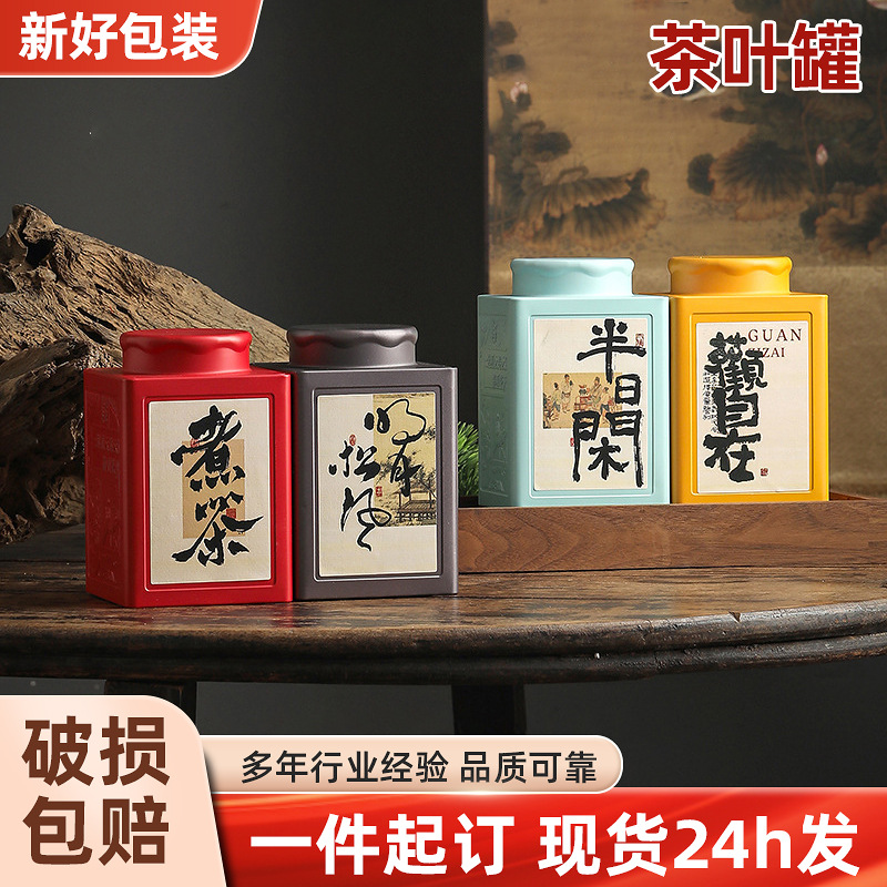 在庫あり卸売 ヴィンテージ高級茶缶 正方形缶 紅茶 緑茶兼用 半斤包装缶 鉄箱