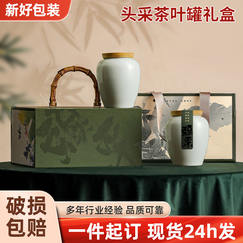 既製茶葉ギフトボックス 緑茶 龍井茶 包装 馬口鉄缶 陶器製缶 カップ付きセット ギフトボックス入り