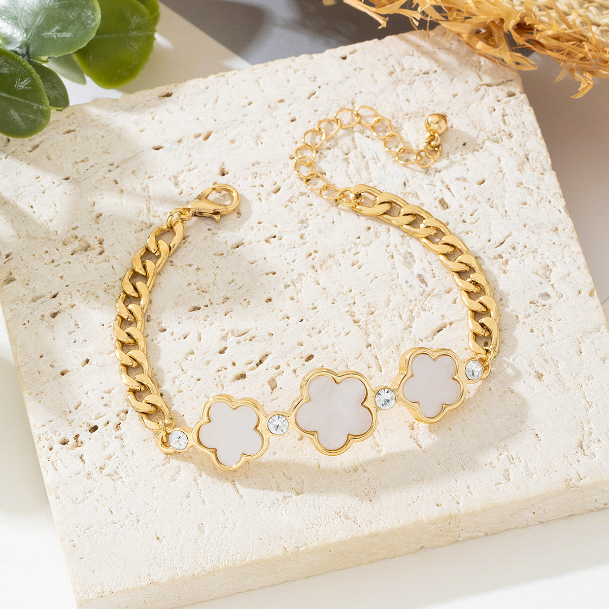 2024新型気質幸運微入ドリル五葉草ブレスレット秋冬ファッション優雅ネット赤同花手飾り