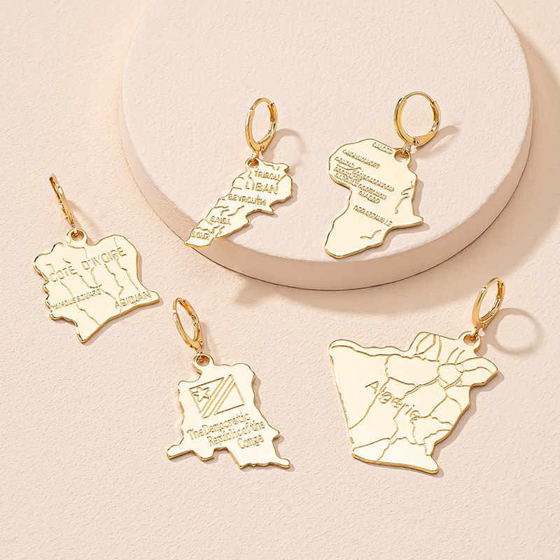 民族風アフリカ地図プレートイヤリング気質レトロ誇張欧米風ピアス女性ヒップホップクロスボーダーアクセサリー