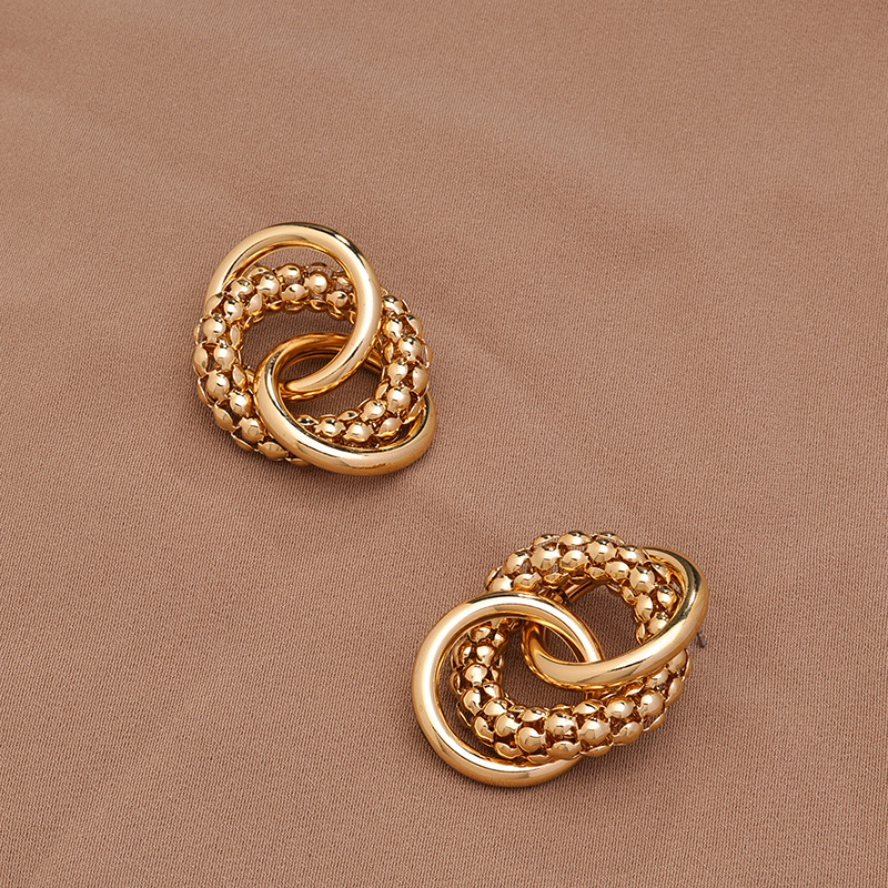 Insフランス高級感麻花イヤリング女性欧米レトロ金属中空気質円耳飾り