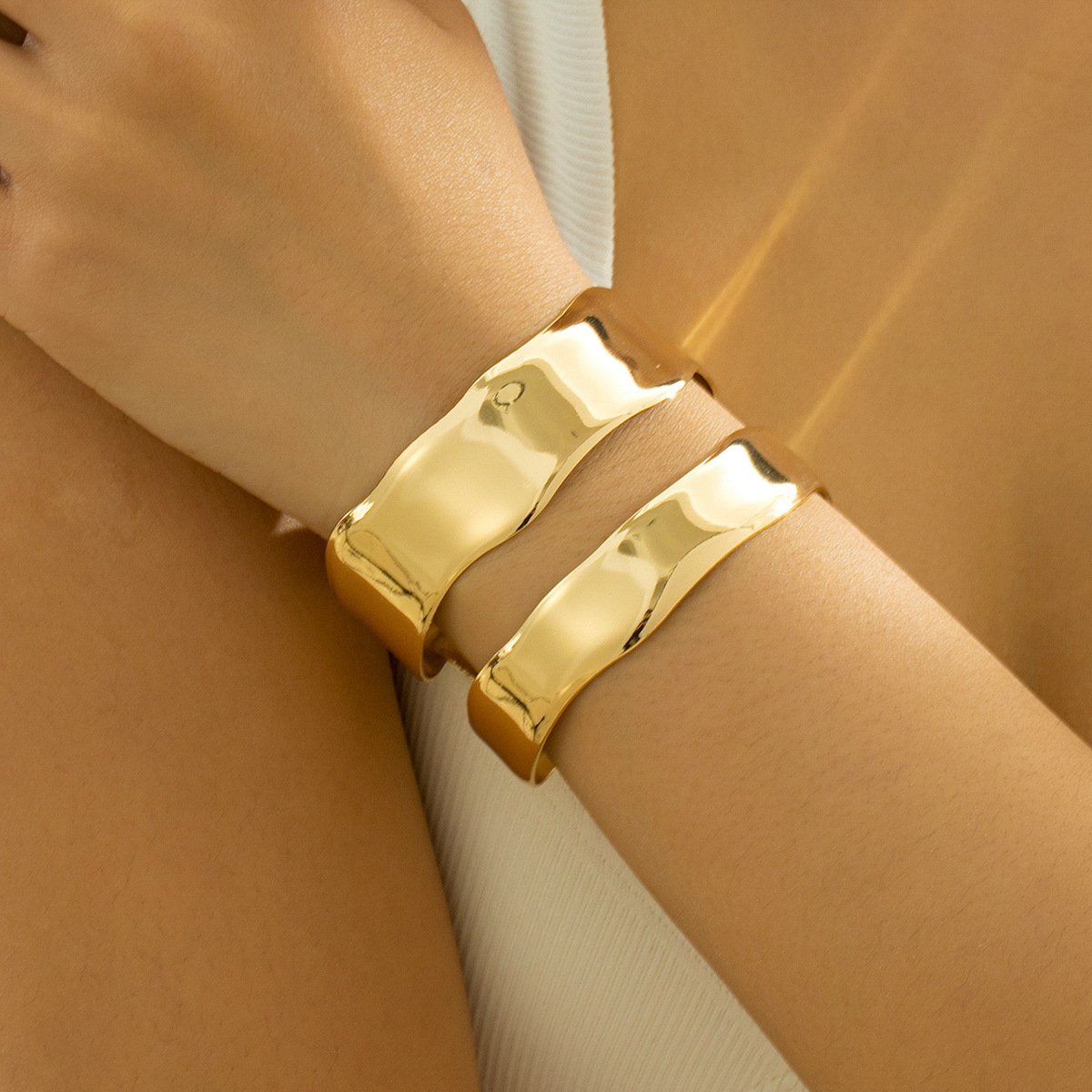 クロスボーダーヨーロッパとアメリカのレトロな個性の幾何学的な金属の光沢のあるオープンブレスレット誇張されたトレンディなデザインの女性用のつばの広いブレスレット