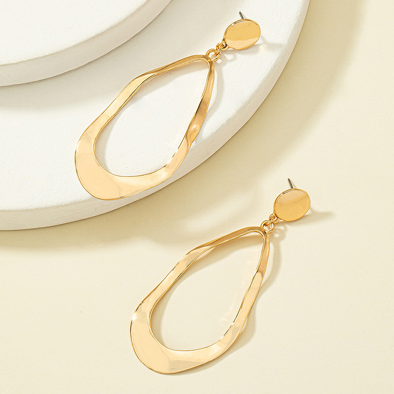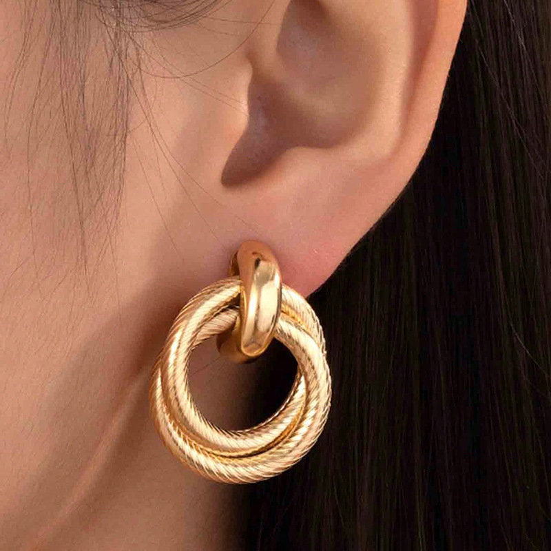 欧米の幾何学的な麻の花のねじれの線の金属の質感の大きい円のイヤリングinsのファッションのシンプルなデザイン感の耳飾り