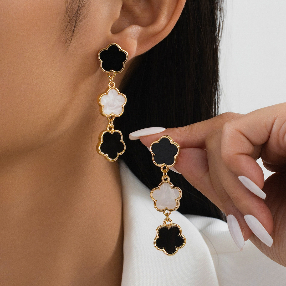 欧米の長いタイプの白黒の五葉の草のフリンジのイヤリングの気質の優雅な高級感のイヤリングのレトロなファッションのinsの耳飾り