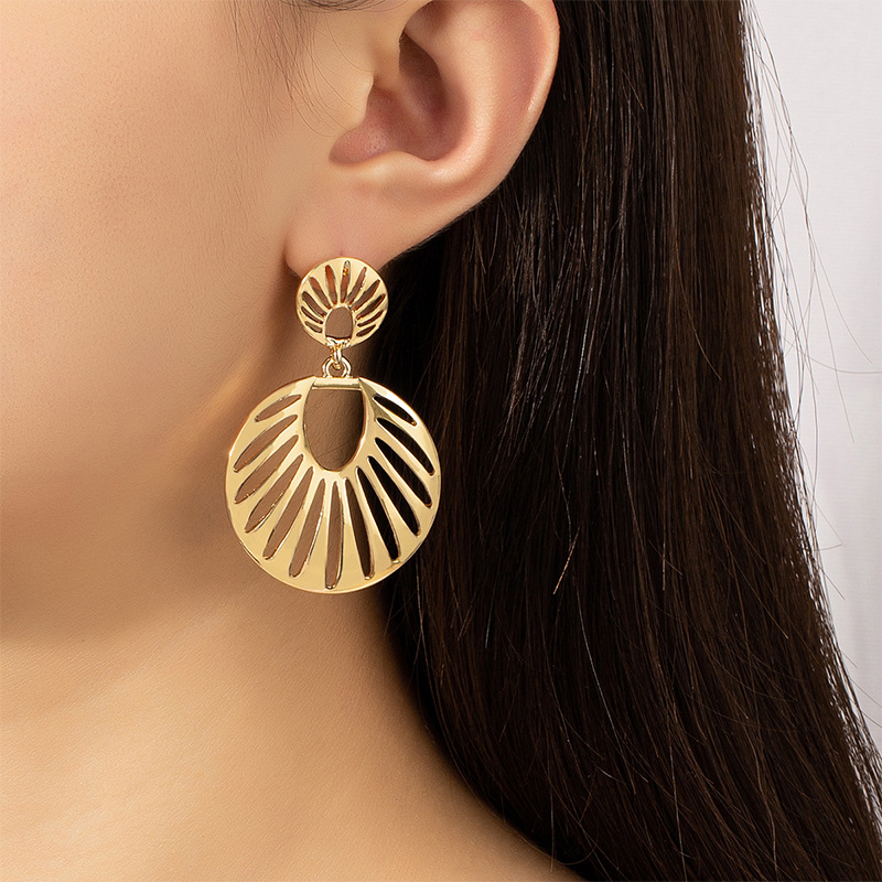 欧米のクロスボーダーの装飾品のファッション的な個性の耳飾りの扇形の透かし彫りのイヤリングの金属のイヤリングの気質のイヤリングの女性の卸売り