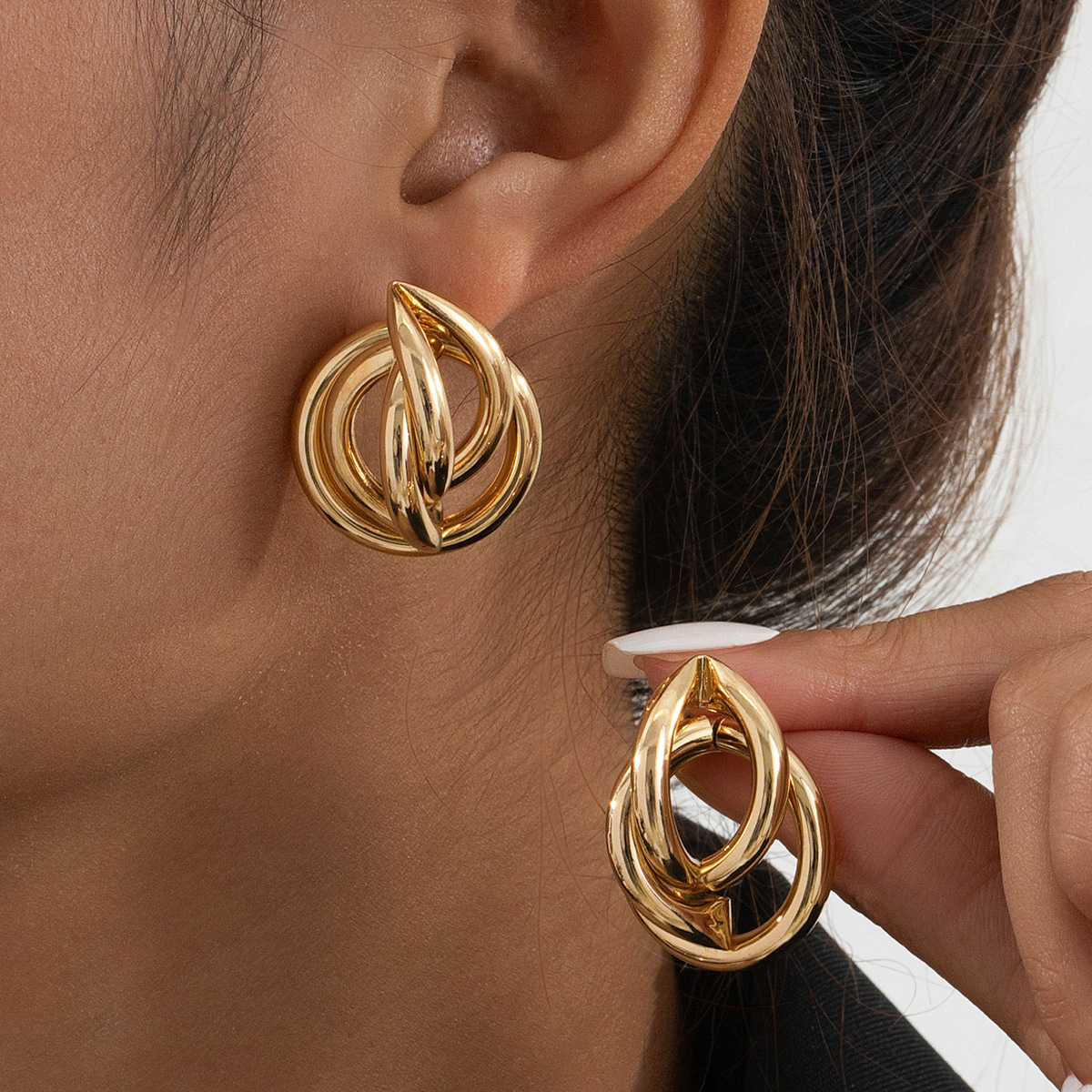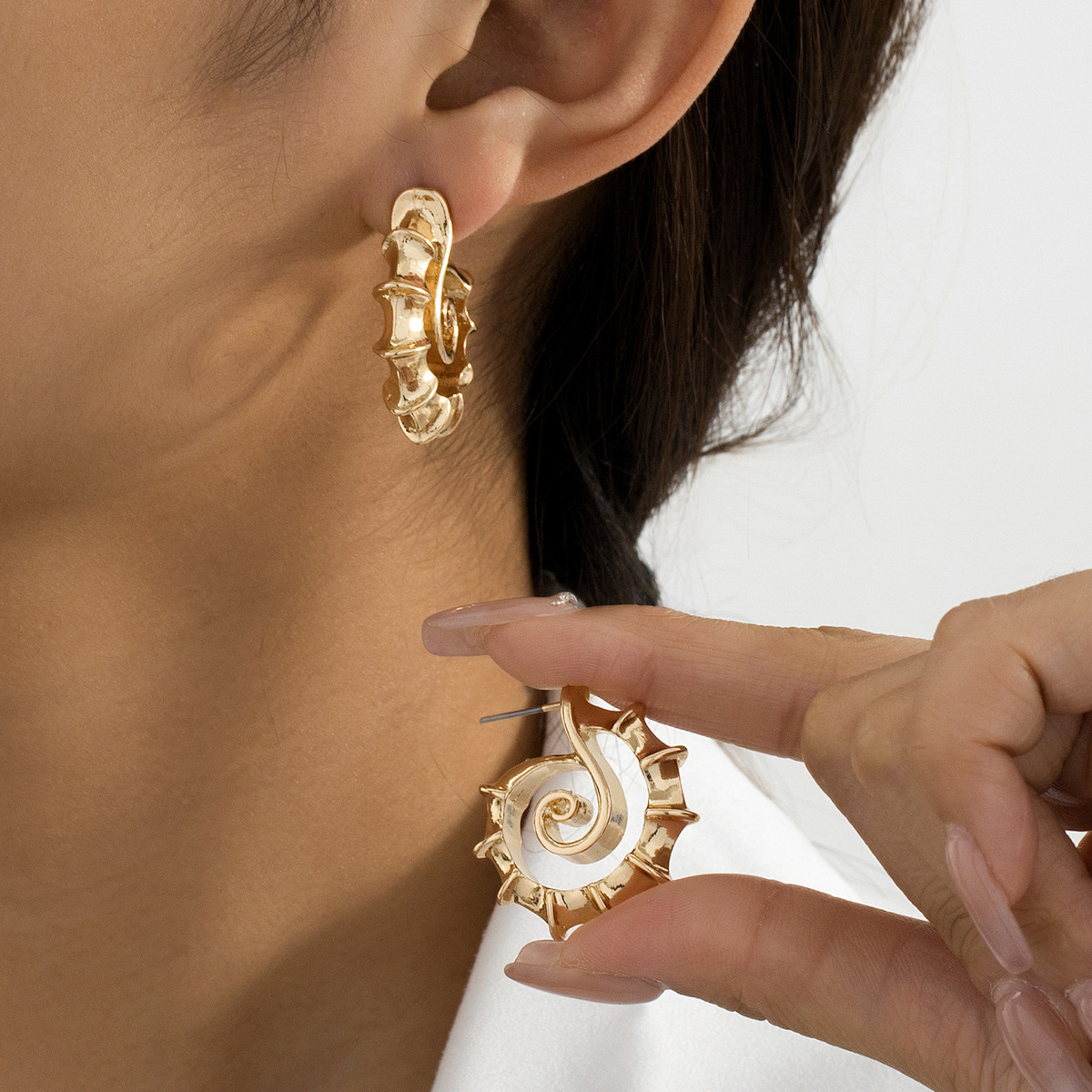 クロスボーダーの新型大げさな幾何学のイヤリングの女性の立体的なデザイン感の金属はねじりのイヤリングの欧米の個性の装飾品を巻いています。