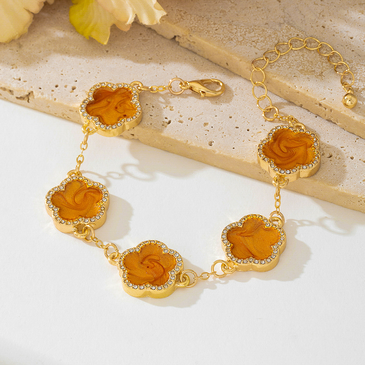 五葉のクローバーブレスレットクロスボーダー新しいスタイルダイヤモンドがちりばめられたオイル滴る五弁花ブレスレット女性のためのヨーロッパとアメリカのハイエンドフラワージュエリー卸売