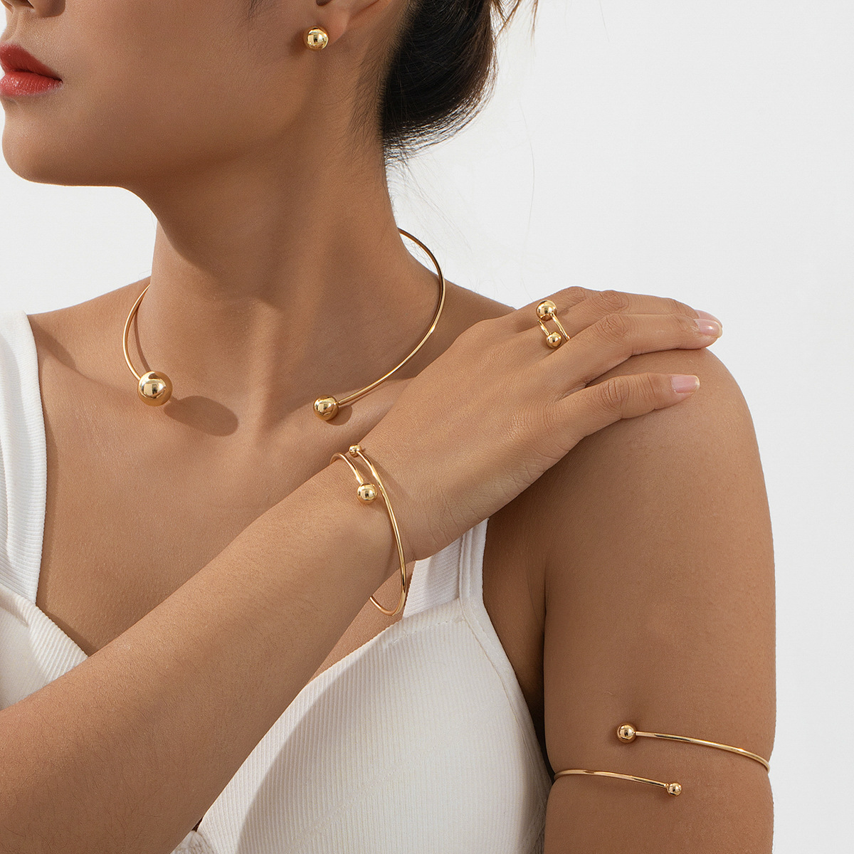 ファッションクロスボーダー個性シンプルな金色の丸い玉の首輪の腕の腕輪の指輪のピアスのinsの冷たい風のアクセサリーのセット