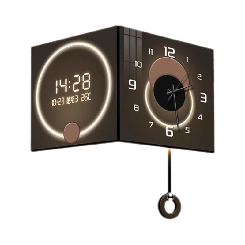 ライト高級コーナー壁時計リビングルームクリエイティブ両面コーナー時計シンプルで雰囲気のあるデジタルディスプレイ電子時計壁掛け