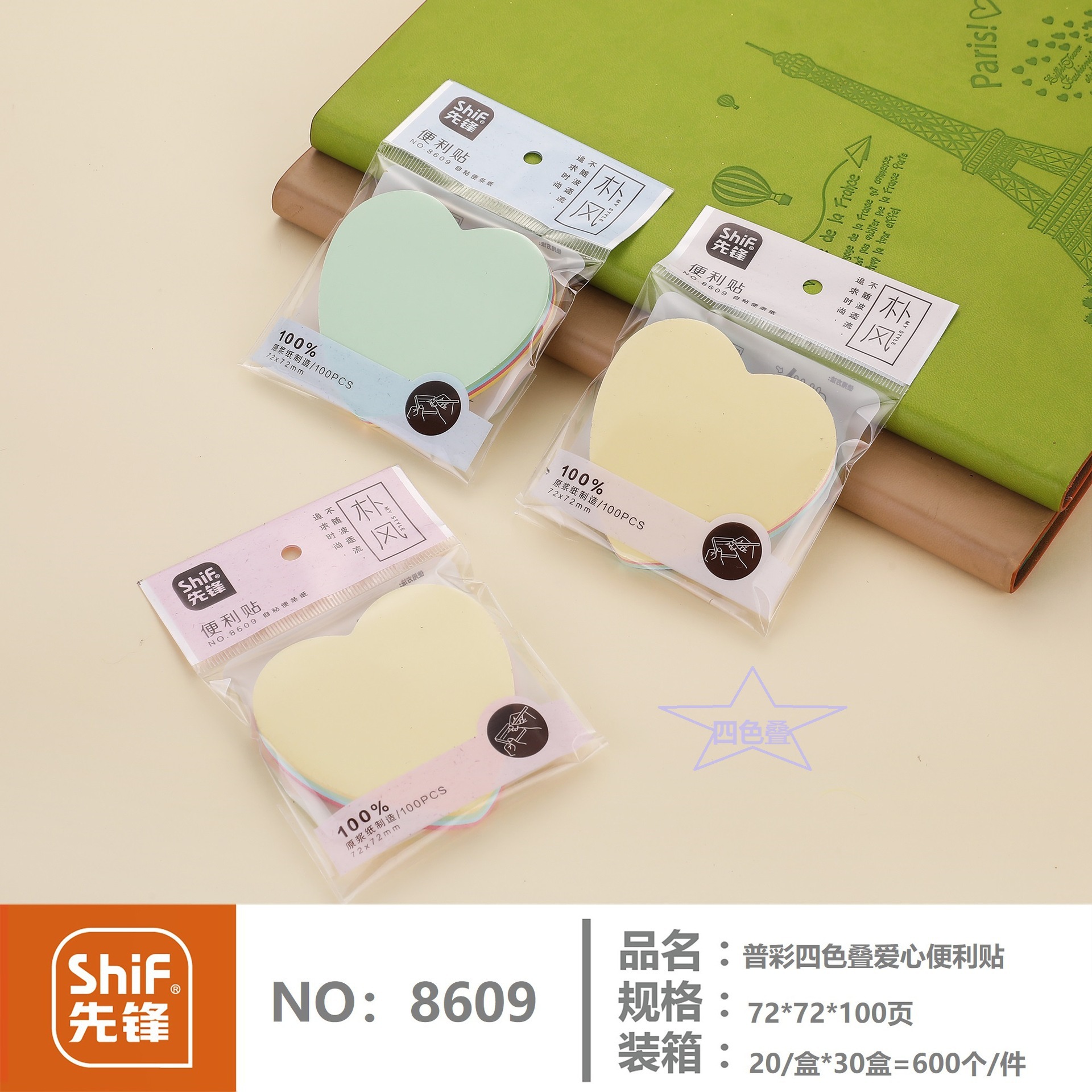ハート型の4色の付箋の現物の卸売りは学生の事務の文房具の付箋を引き裂くことができます。