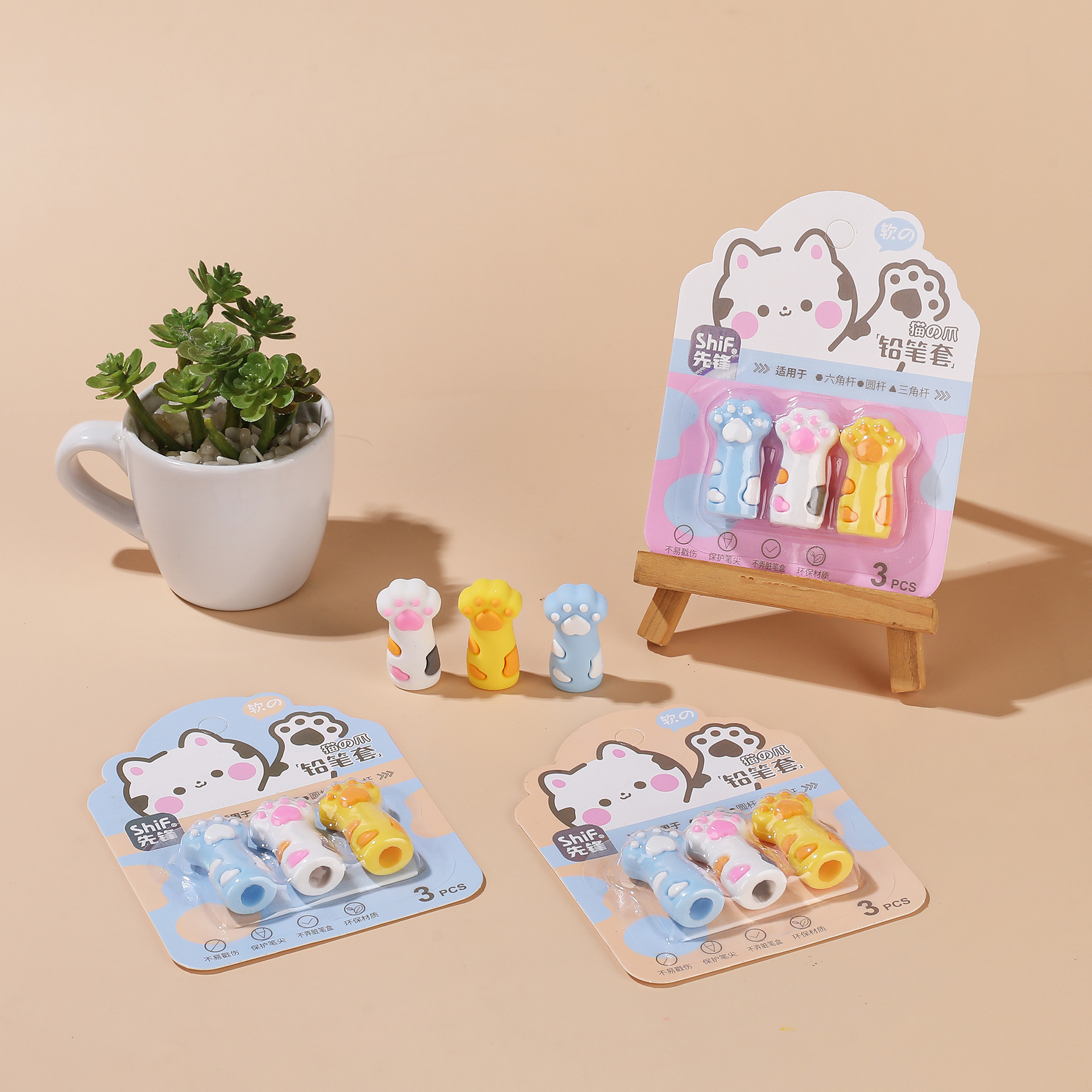 帽子のかわいい猫の爪の鉛筆の蓋の漫画の形のシリコンの筆の帽子の保護カバーの超萌えの小学生の筆のセットの工場の卸売り