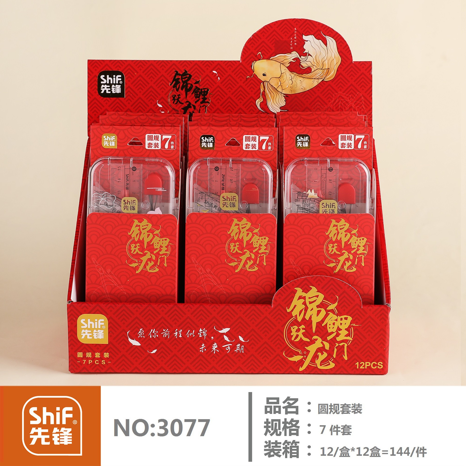 コンパスセット7点セット絵数学アニメ先鋒3077錦鯉躍龍門カラーケース多機能文房具