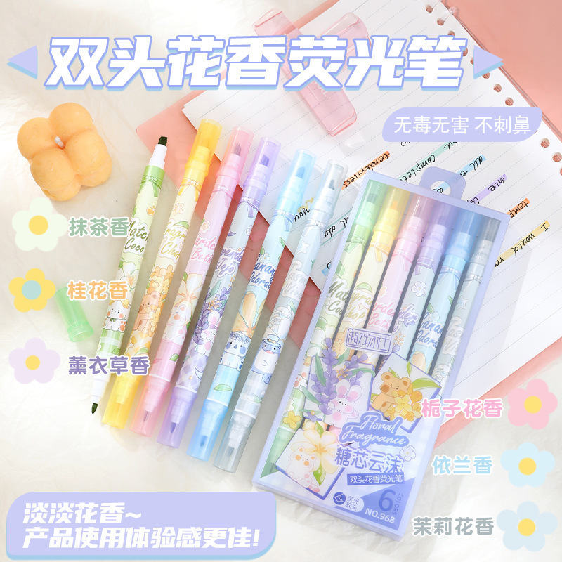 双頭の花の香りの蛍光ペンの子供の贈り物の事務用品の美術の落書きの絵の筆の香りは目の6色の絵筆を保護します。