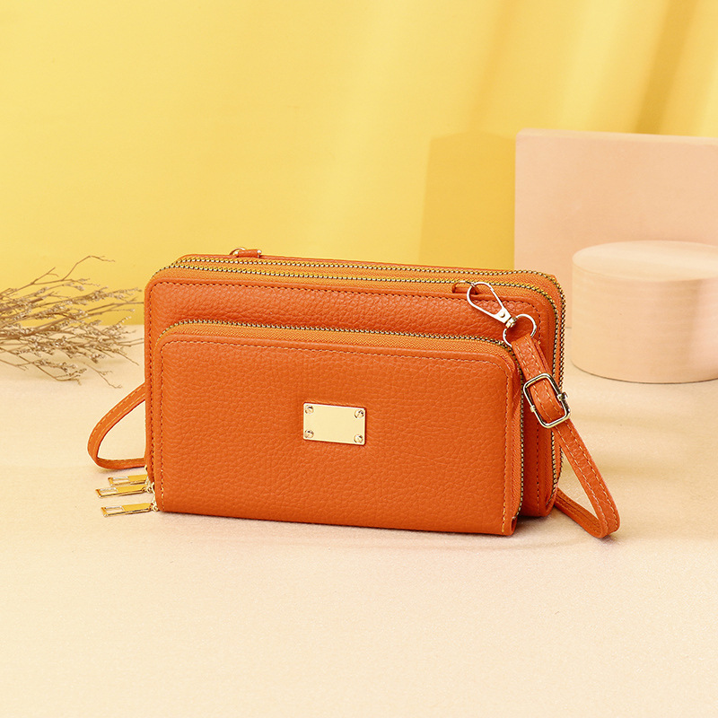 レディース携帯電話バッグ高級感新品大容量高低3ファスナー携帯電話バッグトレンドファッション斜め掛けショルダーバッグ