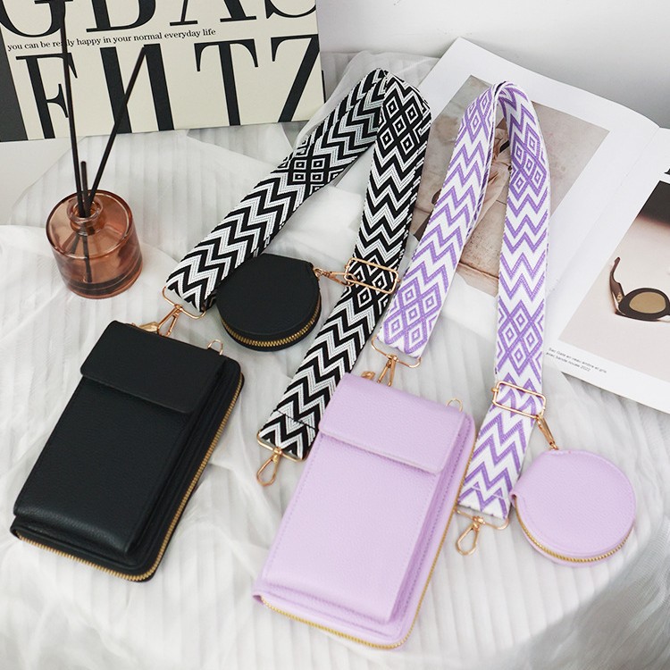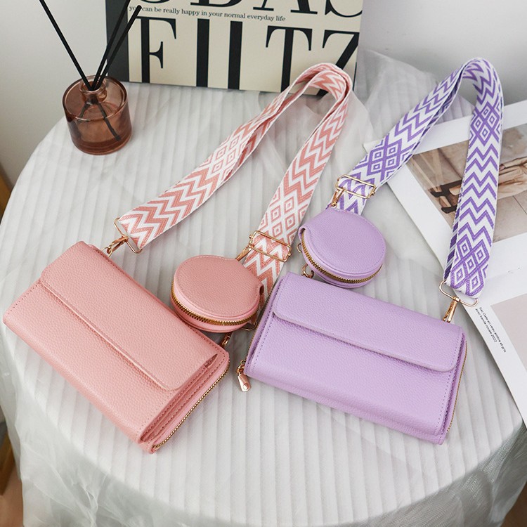 よく売れている新型の斜めショルダーの幅の肩ベルトの縦型の携帯電話の包みの日本の純色のシンプルな子母の包みの多機能の女性の財布