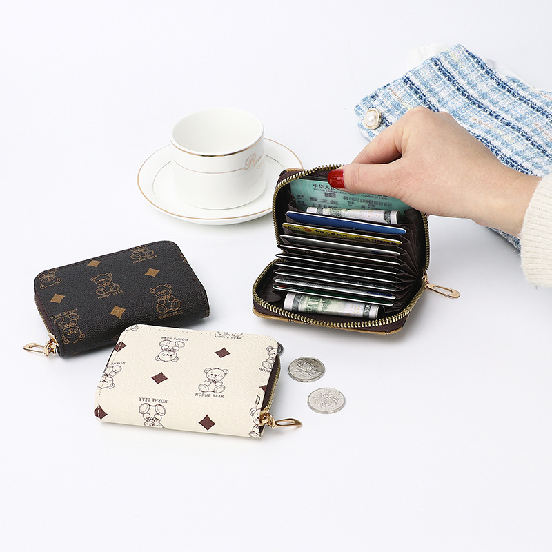 ホットな新しい韓国スタイルのクマプリントオルガンカードホルダー絶妙なハイエンドマルチカードスロット漫画収納コイン小銭入れ