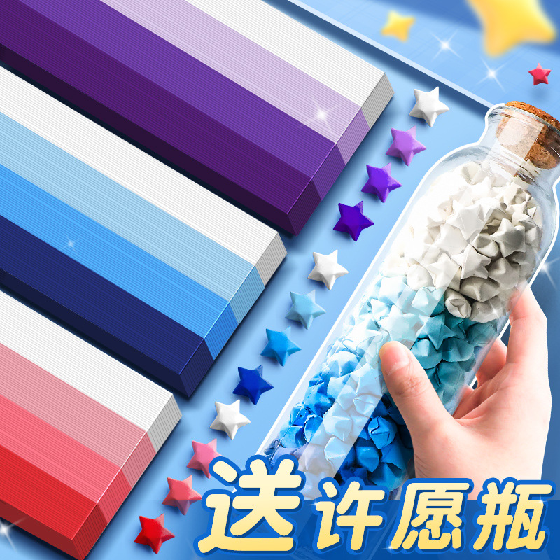 グラデーション色の星の折り紙は星を重ねてガラス瓶をプレゼントします。