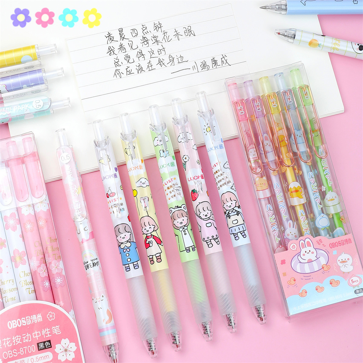カラー中性筆モランディ色手帳筆セット学生用メモinsシンプル押し式一本多