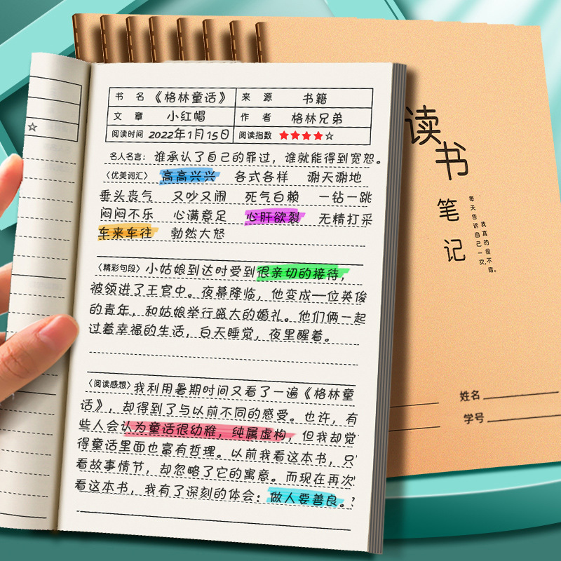 A5読書ノート抜粋本読書記録カード本小学生児童好詞好句日々蓄積