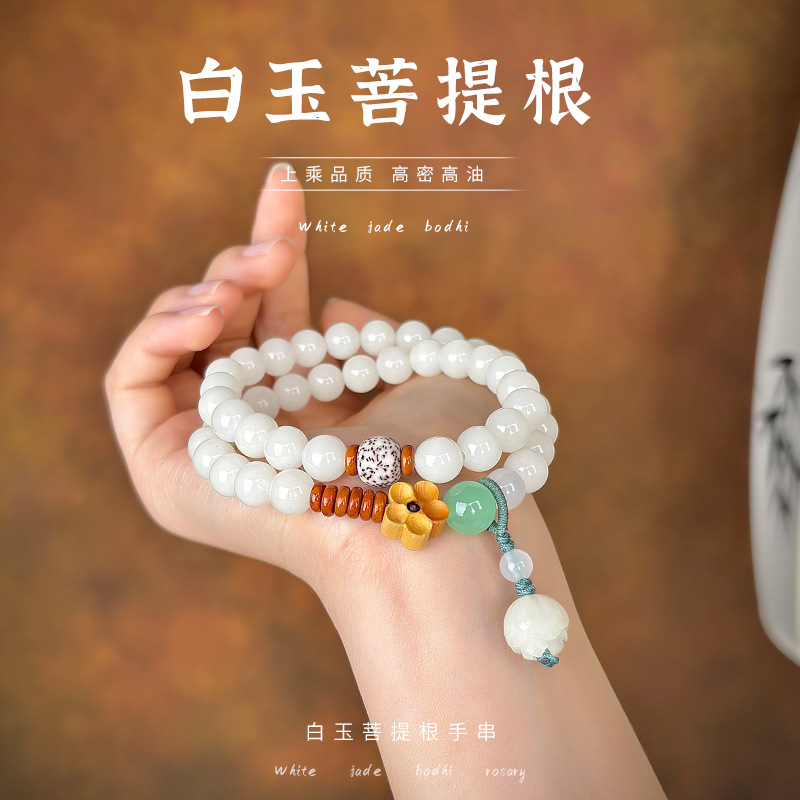 天然海南小白玉菩提手串乾磨老種菩提子は指の柔らかい女性の文を巻いて仏珠のブレスレットの卸売りをします。
