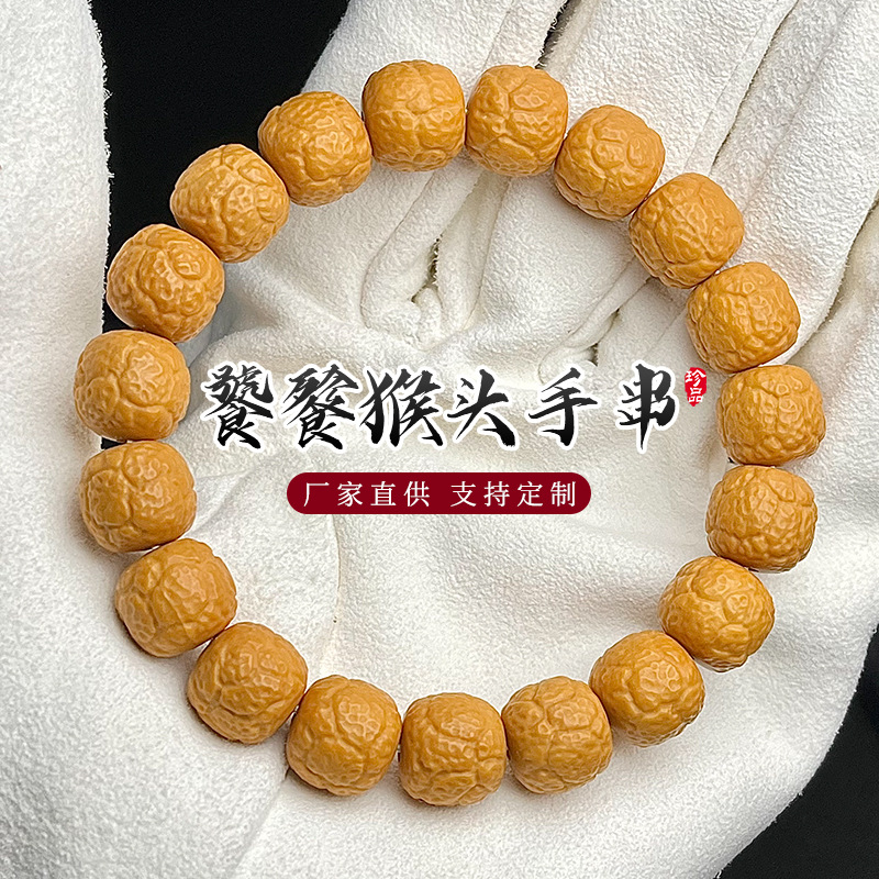 逸品の猿の頭の菩提の精密な彫刻の手の串は飴の古い型の珠玉の文を彫って仏珠の手の串の男女の金の菩提子を遊びます。