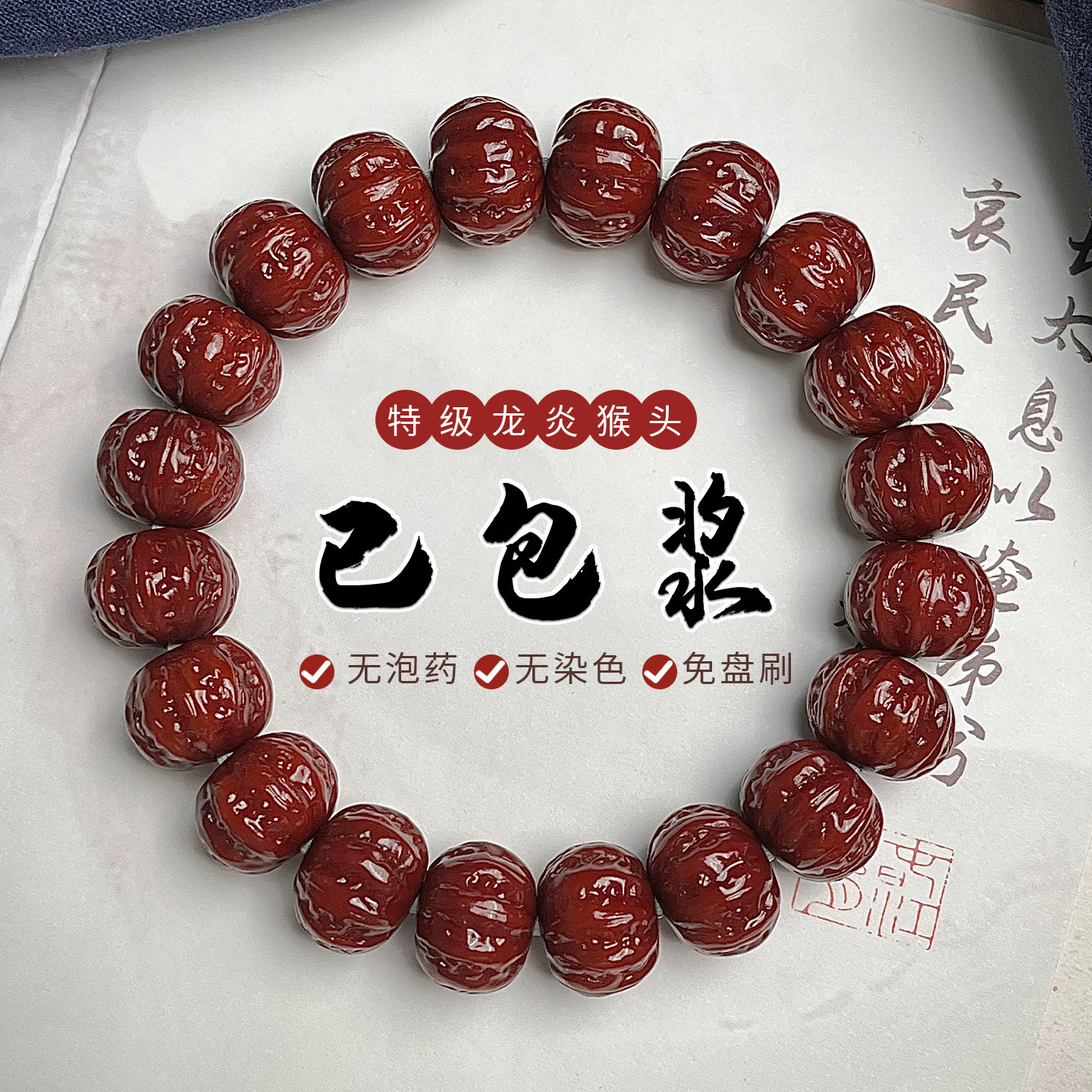 翡翠包皮彫刻モンキーヘッドブレスレットクルミオリジナルシード京八角鳳凰羽リッチマンシングルサークルプレート仏珠ブレスレット