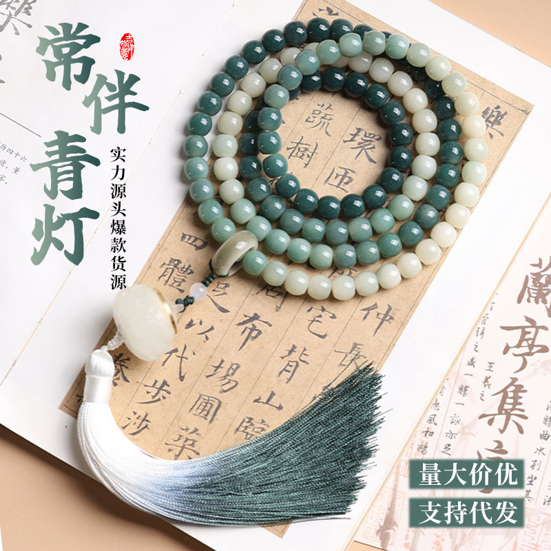 天然緑菩提ブレスレット 108 マルチサークルバレルビーズ中国風ニッチ仏陀ビーズブレスレット工場直販
