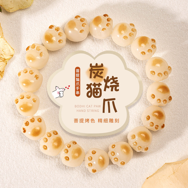 菩提根彫刻炭火焼猫爪ブレスレット卸売男女兼用指巻き柔らかい仏珠ブレスレット数珠