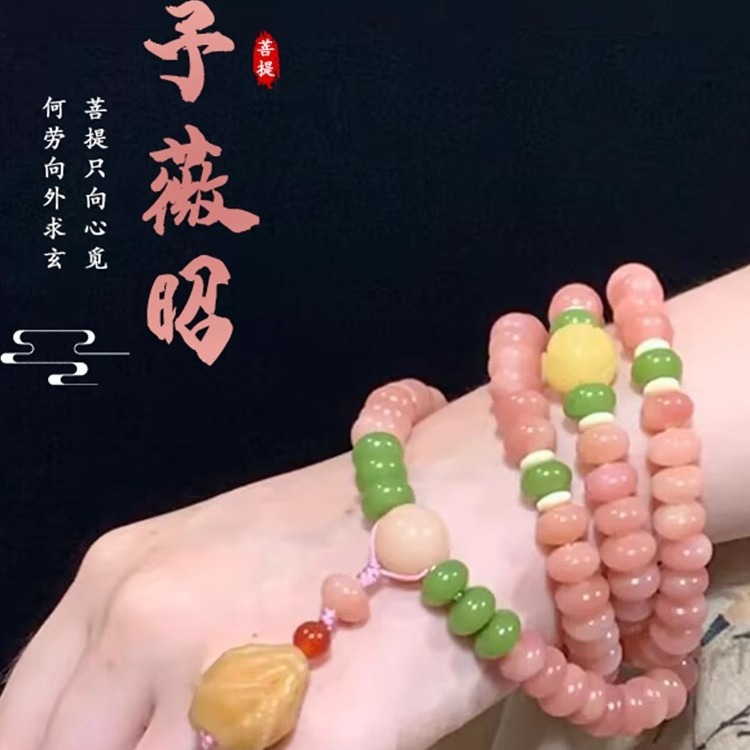 【予薇昭】白玉菩提根108ブレスレット生放送ソースピンクそろばん珠古風文游仏珠女