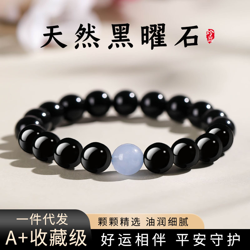 天然黒曜石海藍宝ブレスレット男女緑幽霊アクセサリー五行補水不足男女金水晶手串