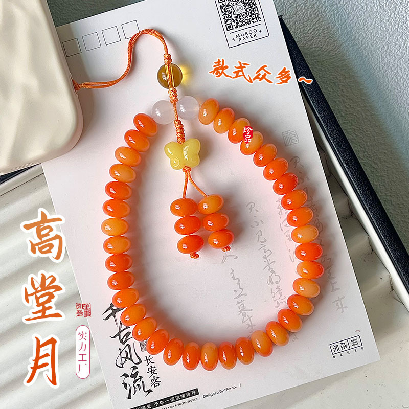 【新品】黄橙そろばん珠菩提根携帯ストラップ手首金紛失防止男女盤
