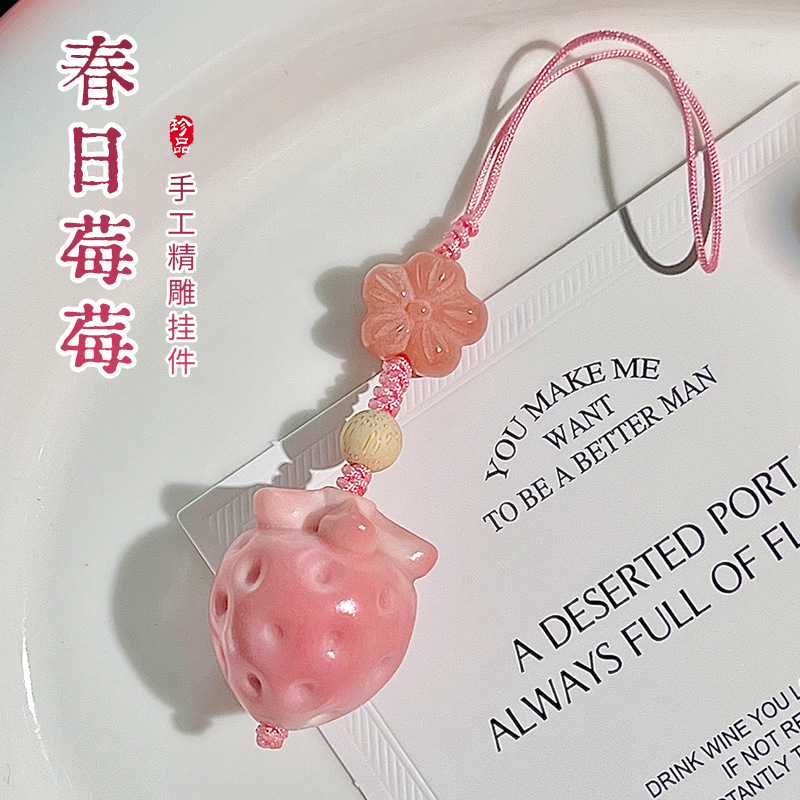 天然象牙フルーツ彫刻イチゴ携帯電話吊りチェーン親友バッグキーホルダージュエリーペンダントライブブロードキャスト供給