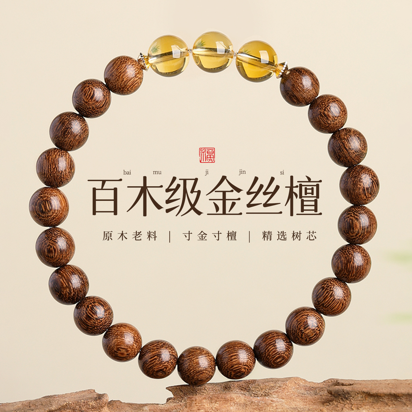 天然古材金白檀気質高品質文学モデルシングルサークル仏珠木製数珠工場卸売