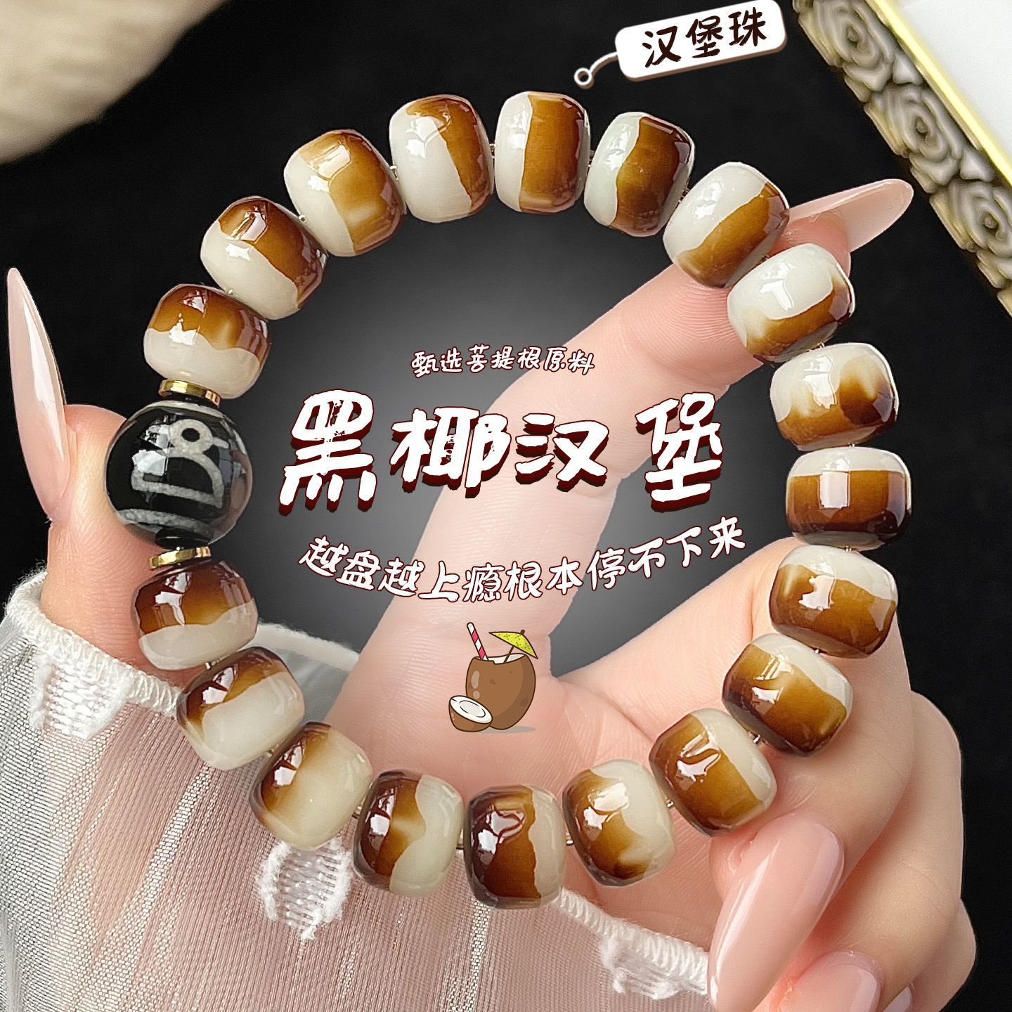 女性用ブラックココナッツバーガービーズ菩提根ブレスレット、指に巻き付ける柔らかい学生菩提ビーズ、男性用仏陀ビーズニッチブレスレット