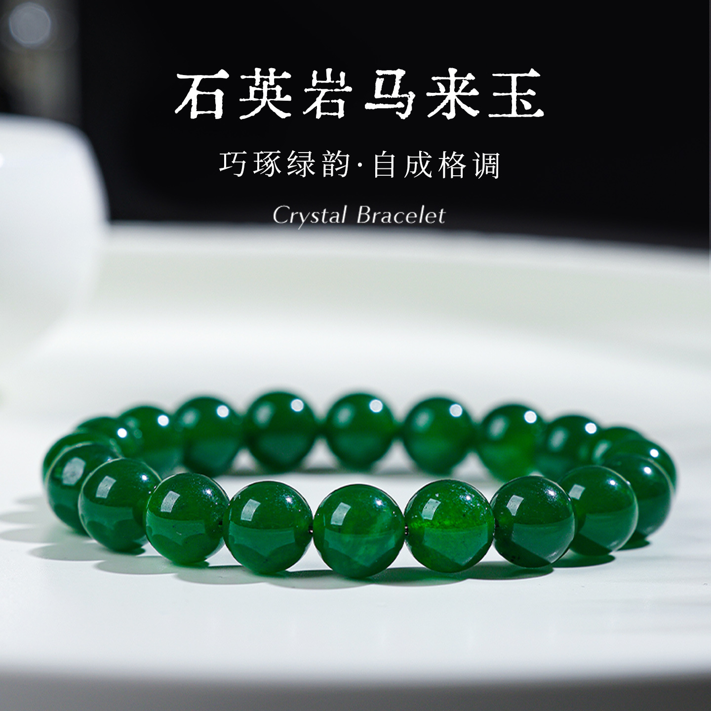 ライブサプライクォーツマレーシア翡翠ブレスレット女性用、白くて多用途な緑の翡翠ビーズシングルサークルブレスレット卸売
