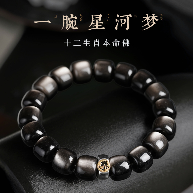 天然銀曜石手串本命年十二生肖桶珠単輪指柔男性文遊びブレスレットプレゼント