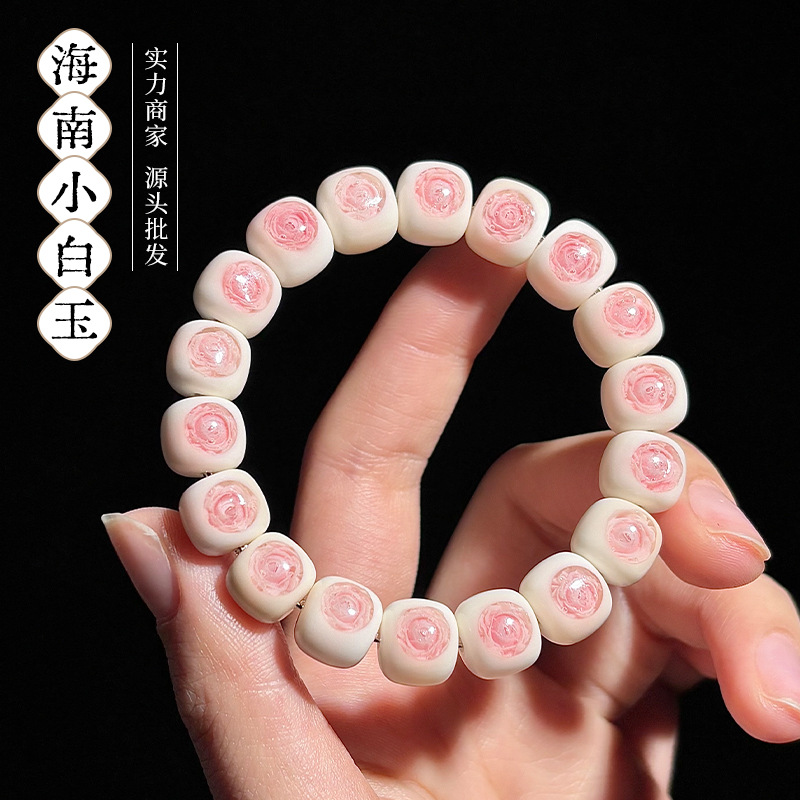 天然海南の小さな白玉菩提の手の串はバラの花の文を貼って、指の柔らかい皿を巻いて仏珠メーカーの卸売りをします。