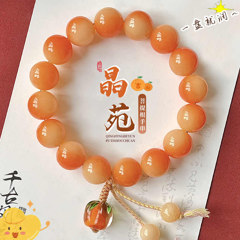 オレンジ色の花菩提の手の玉の輪の柿のペンダントの文は指の柔らかい皿を巻いて仏の玉の工場の卸売りを遊びます。