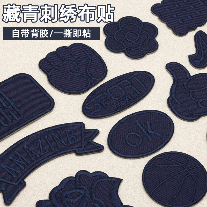 自粘無縫刺繍布貼りダウンジャケット破れ穴無痕修復パッチ紺色刺繍パッチ