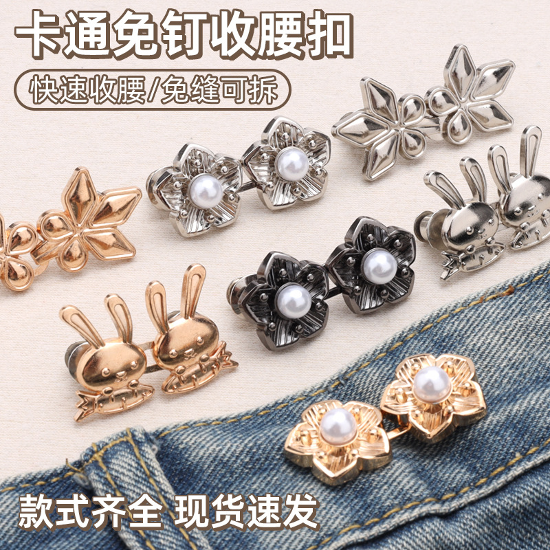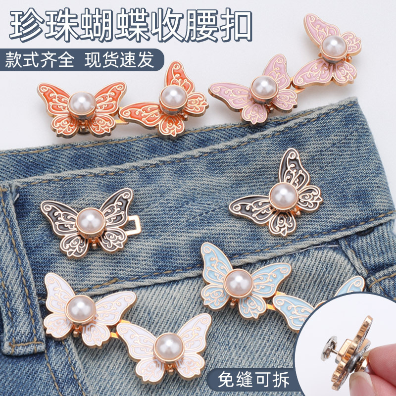 新しいパールバタフライウエストボタンジーンズ、フラットソール、取り外し可能なウエストボタン、ウエストを大きく小さくするウエストボタン
