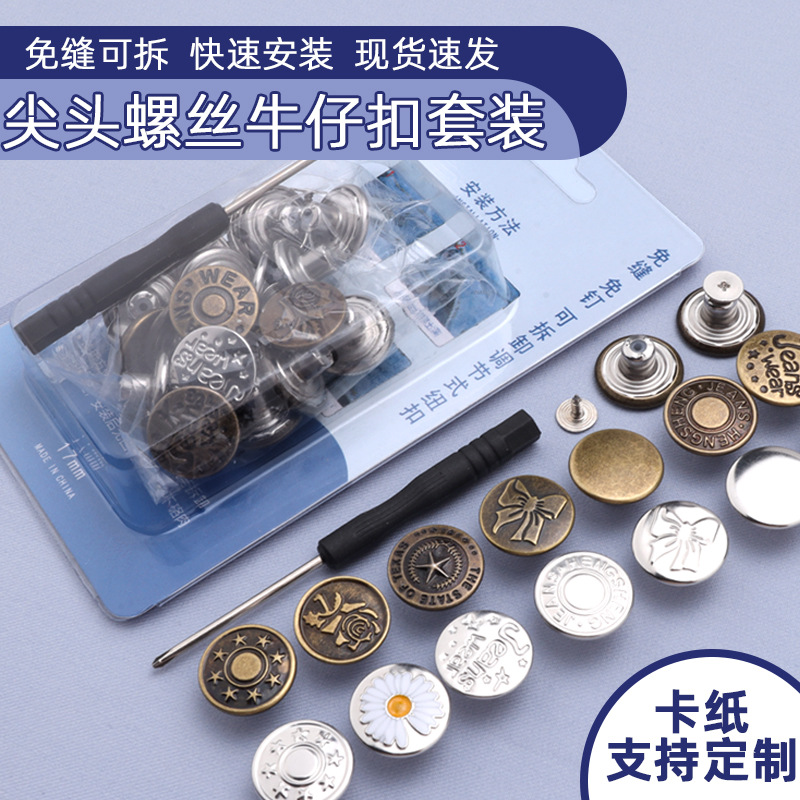工場直送デニムボタンバブルシェルセット、ジーンズウエストボタン、縫い目なし、釘なしウエスト調整ツール