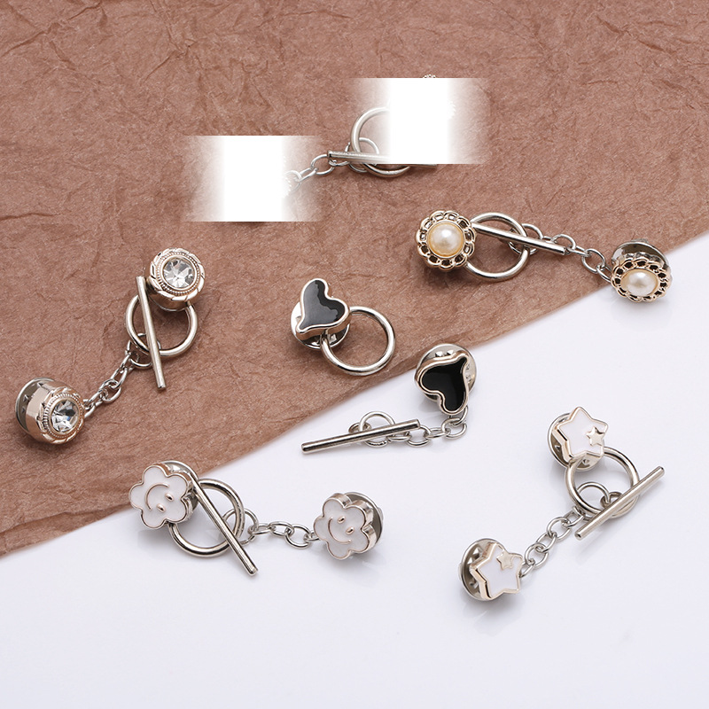 セーターのカーディガンはチェーンOTを取り外して服の襟元を固定します。ボタンを固定します。