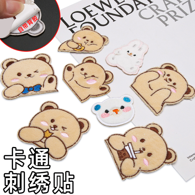 漫画かわいい動物の名前布貼りバッジ刺繍貼り子供服カバン縫いなし自己接着装飾貼り布
