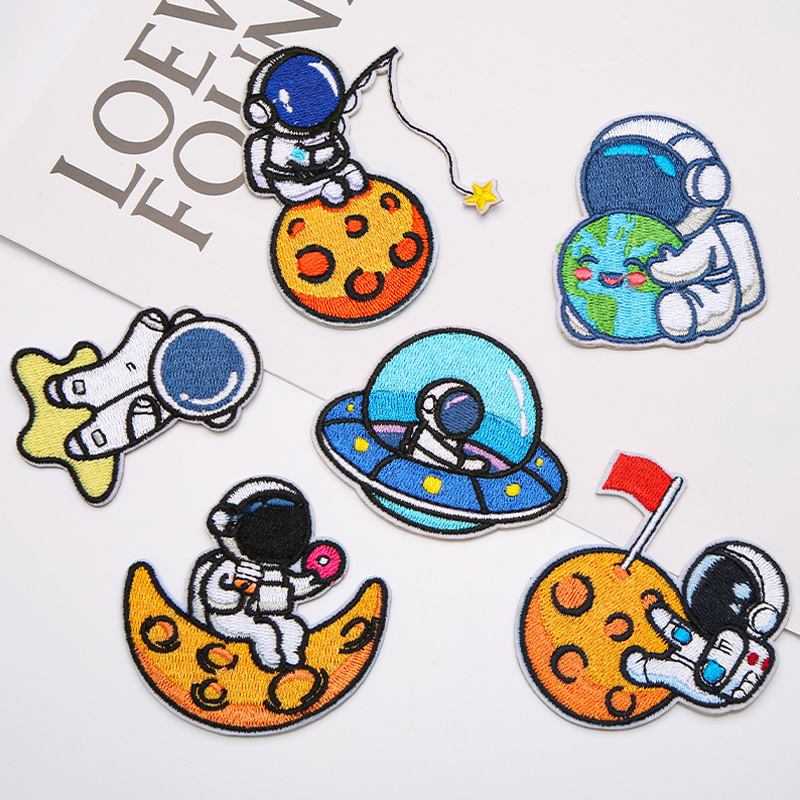漫画自己粘着布ステッカーかわいい宇宙飛行士星コンピュータ刺繍ステッカーバッグダウンジャケット破れ穴パッチ
