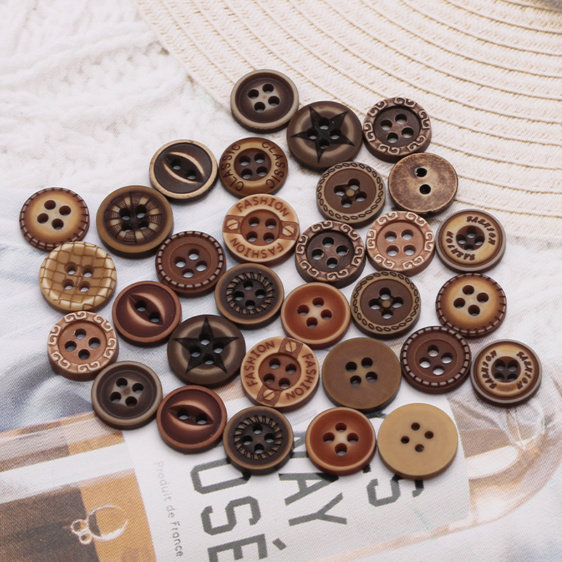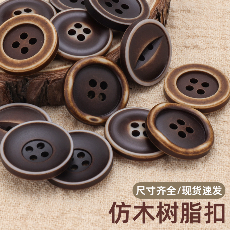 卸売模造木製樹脂ボタンコートウインドブレーカーラウンド手縫い 4 眼ボタンレトロ古いカジュアルスーツボタン