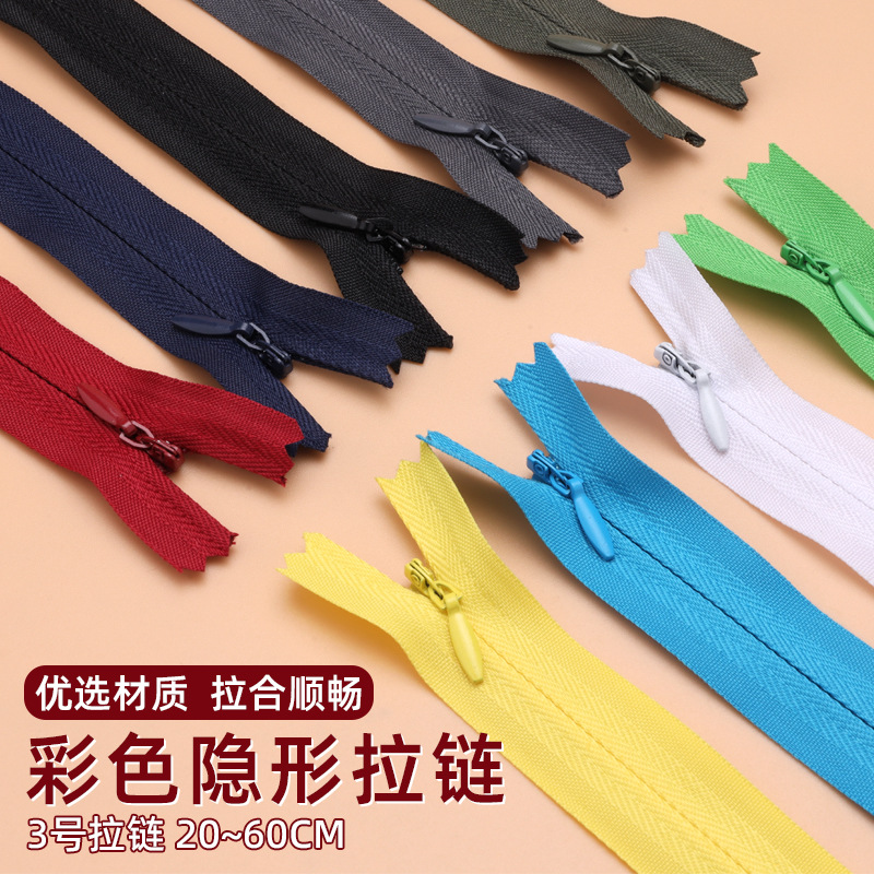 卸売り3号目に見えないジッパーカラーナイロン閉尾チェーン服ズボン抱き枕部品服装補助材料