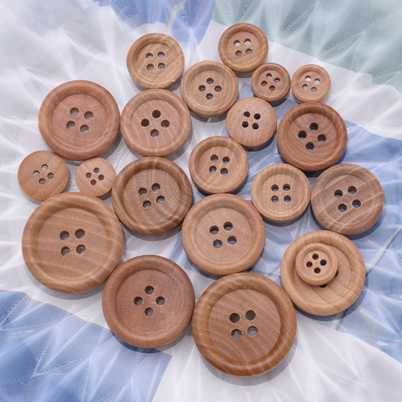 木の四つ目の丸い縁のボタン天然竹の木の頭のボタンのコートのセーターの子供のシャツの木製の手縫いのボタン