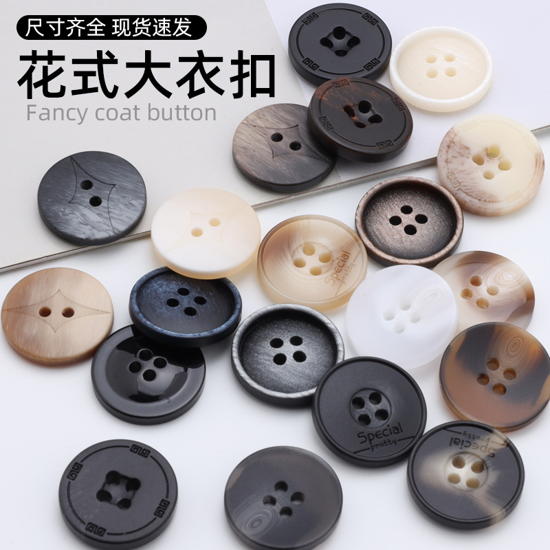 樹脂ボタン意匠大円辺四眼ボタンレトロ柄コートトレンチコートスーツコート飾り手縫いボタン