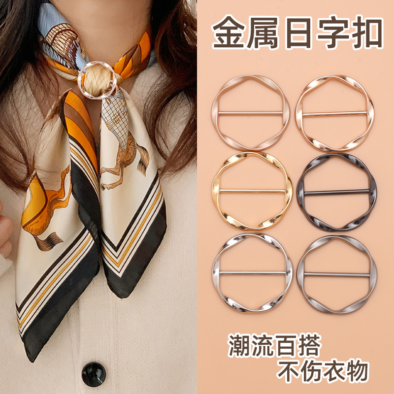 シンプルなシルクスカーフのファッション高級多機能スカーフのショールの結び目は服の裾の固定装飾のバックルを結びます。